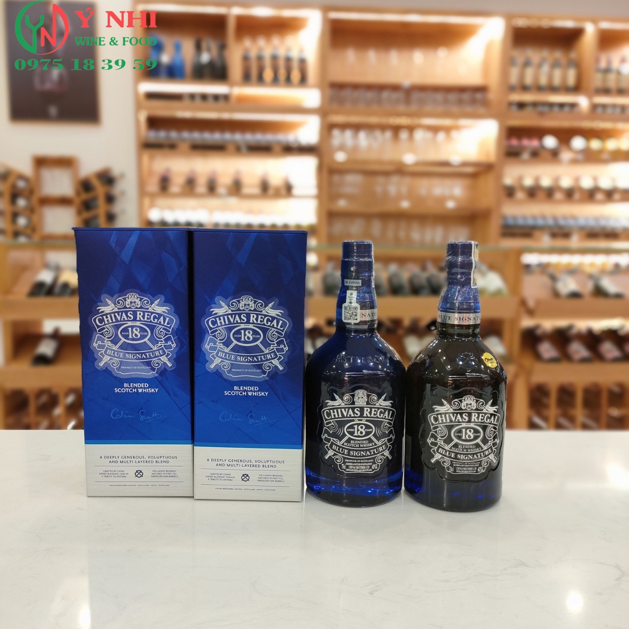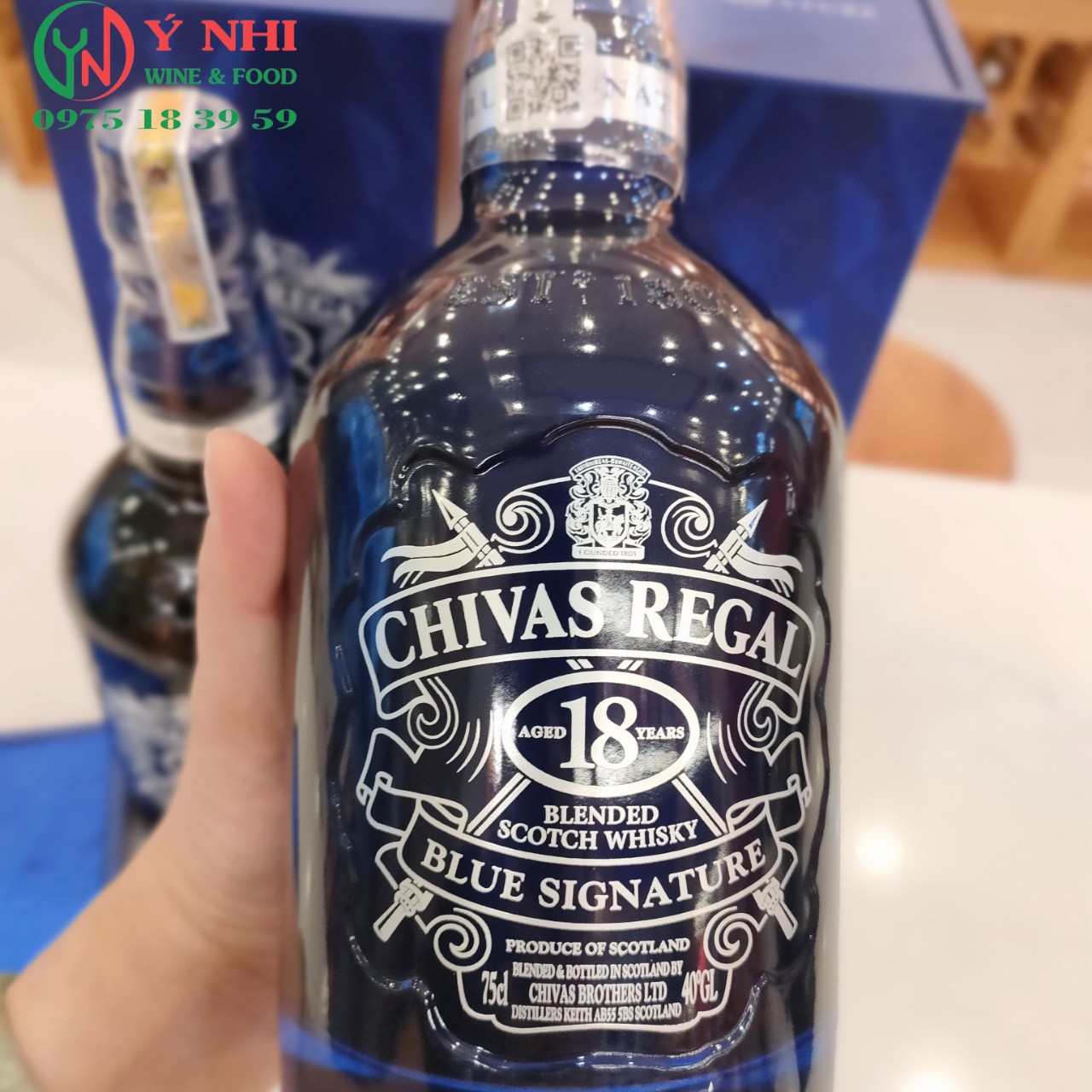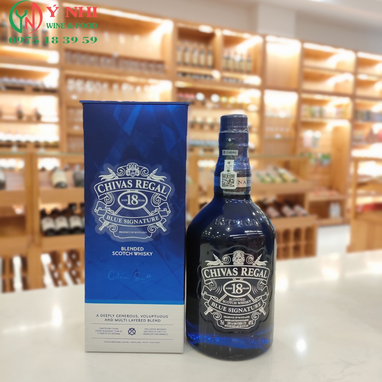 Rượu được tạo ra bởi bậc thầy pha chế rượu Chivas – Colin Scott. Chivas Regal 18 Blue Signature là một tuyệt tác của hãng Chivas. Với thiết kế chai và vỏ ngoài màu xanh dương nổi bật bắt mắt. Thêm vào đó trên vỏ hộp còn có chữ ký của nhà chế tác rượu tài hoa.