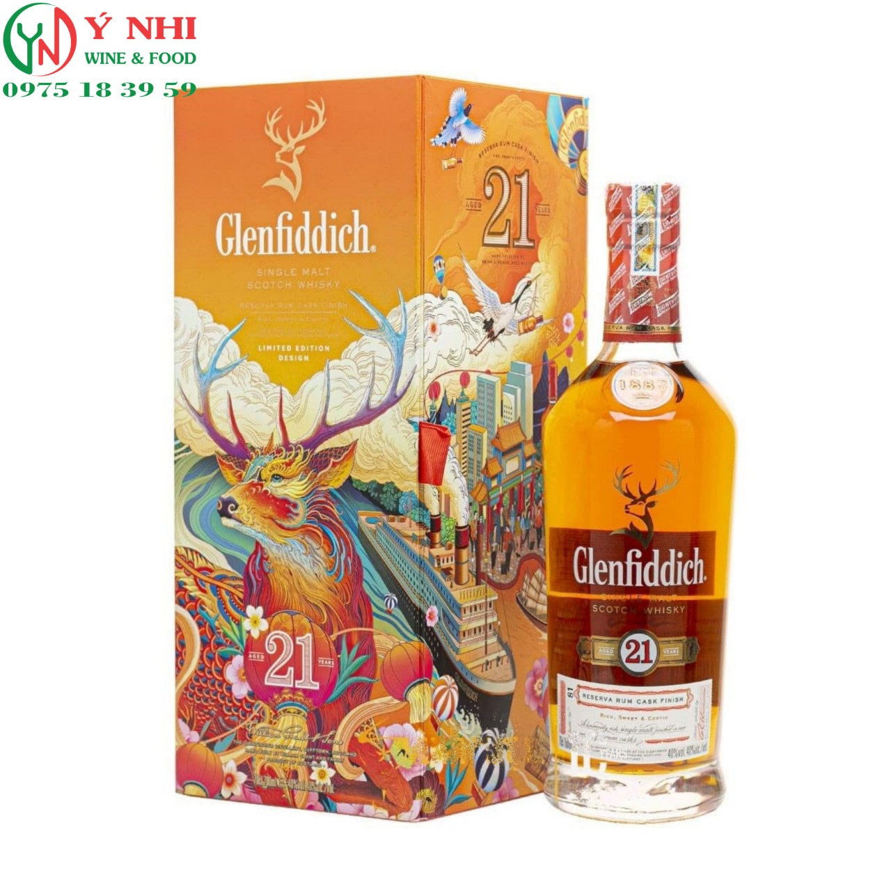 Rượu Glenfiddich 21 năm Reserva Rum Cask Finish, được phối trộn từ những thùng ủ ít nhất 21 năm (4 tháng sau cuối được ủ trong thùng rượu rum ở vùng Caribe tại nhà chưng chất Glenfiddich.