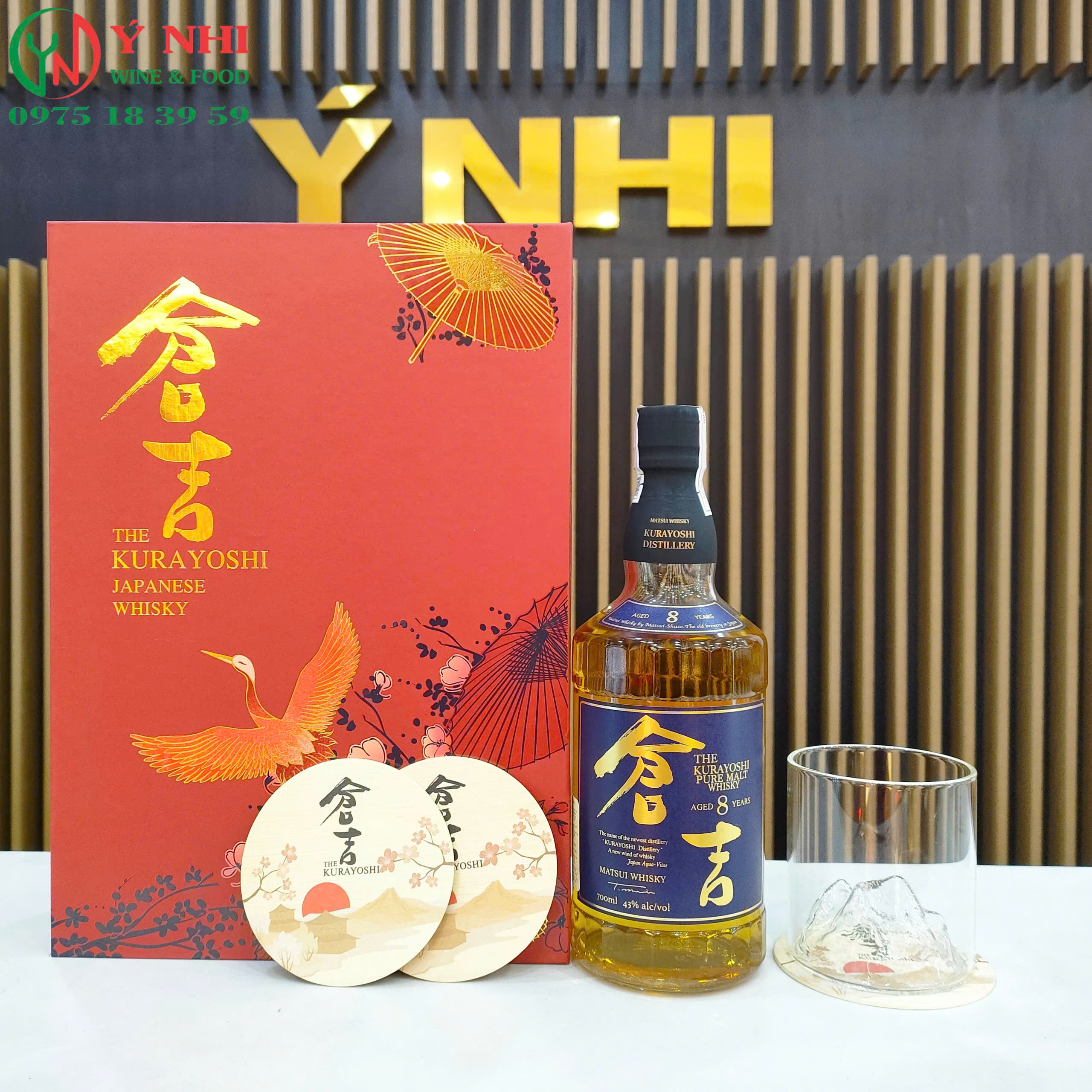 Rượu Kurayoshi Pure Malt Whisky 8 năm dòng whisky Nhật Bản được làm bằng sự pha trộn giữa rượu whisky mạch nha của Scotland và Nhật Bản và được ủ ít nhất 8 năm trong thùng gỗ.