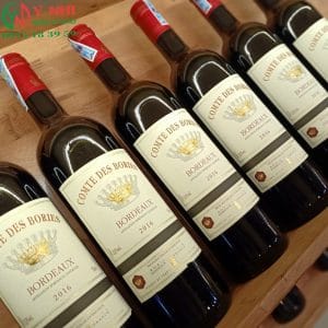Rượu vang Pháp Comte Des Bories Bordeaux AOC là loại rượu vang có màu đỏ ruby, hương thơm quyến rũ của các loại quả mọng đỏ và đen như mận, phúc bồn tử, mâm xôi và mứt cam, vị tannin mềm mại và dư vị tinh tế.