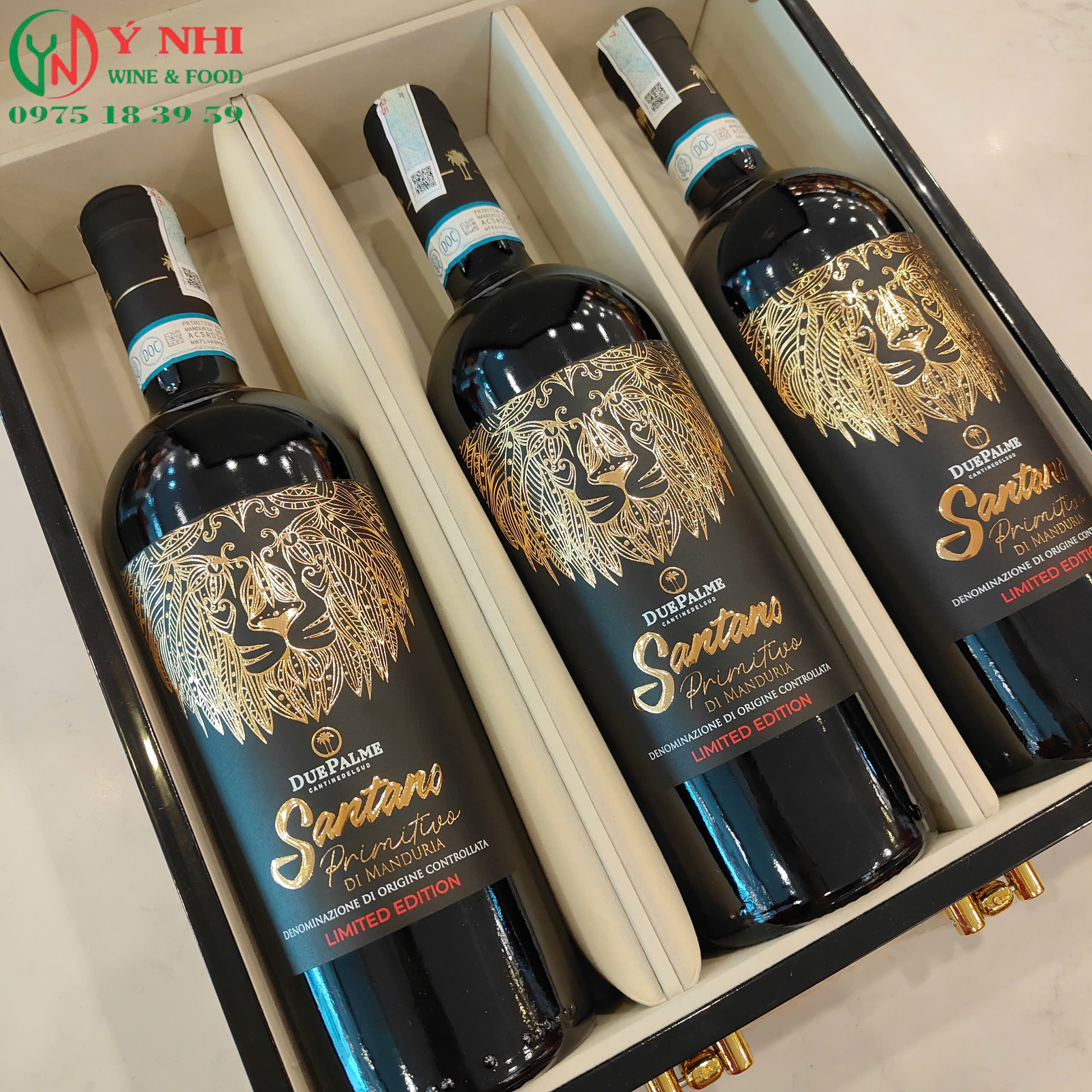 Thành phần chính của rượu vang đỏ Due Palme Santano Limited Edition là sự kết hợp của một loại nho thượng hạng tuyệt vời Primitvo. Nồng độ cồn trong rượu vang đỏ Due Palme Santano Limited Edition khá cao 15 ALC.